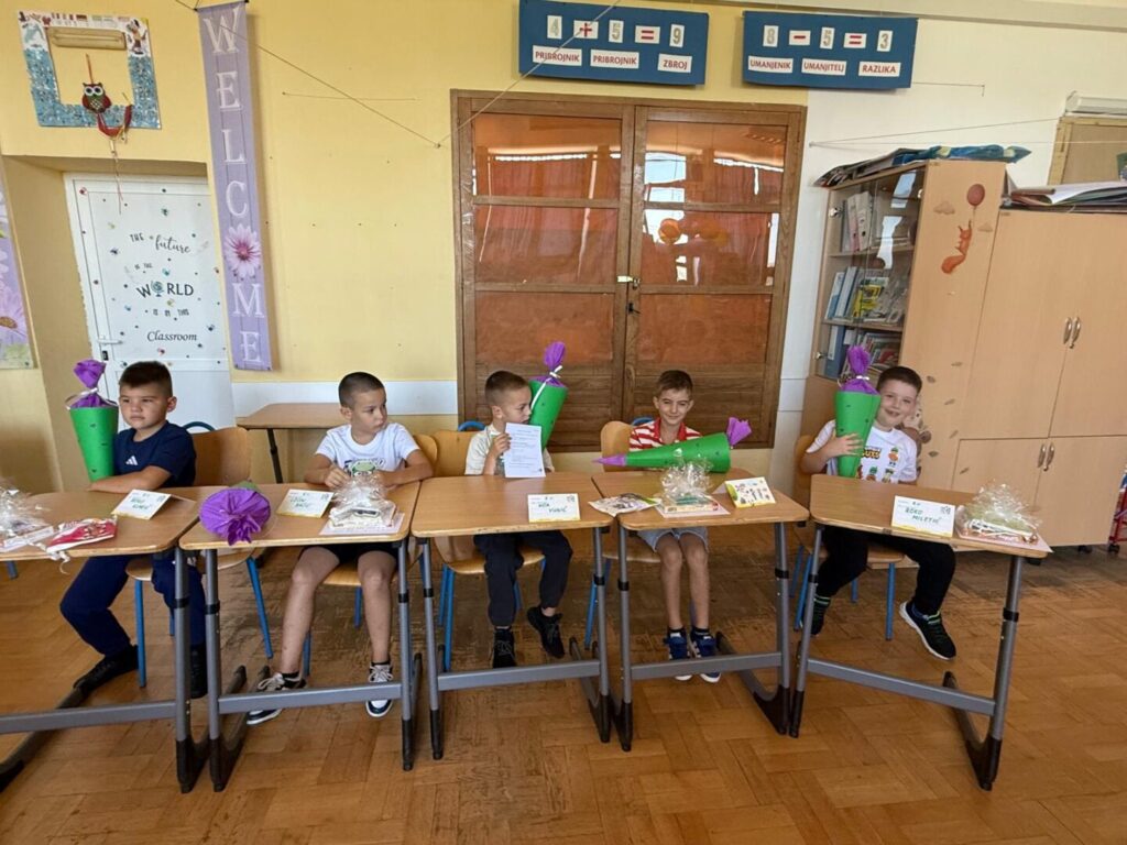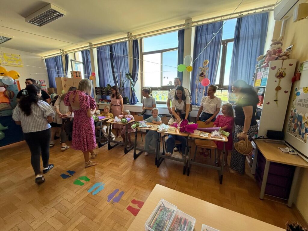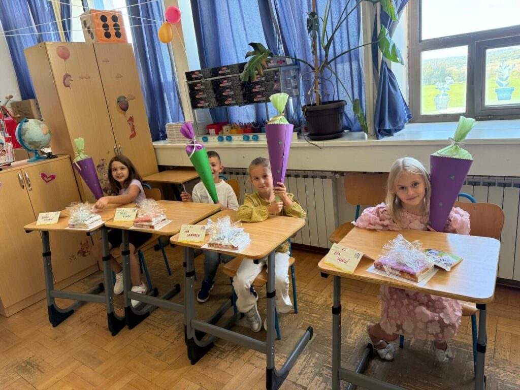 Naši najmlađi učenici prvi su put sjeli u školske klupe, upoznali svoje učiteljice, razredne prijatelje i otvorili vrata svijetu znanja, igre i prijateljstva. Učionice su se ispunile osmijesima, šarenim balonima, dobrodošlicama i ponekim stidljivim, ali hrabrim korakom.