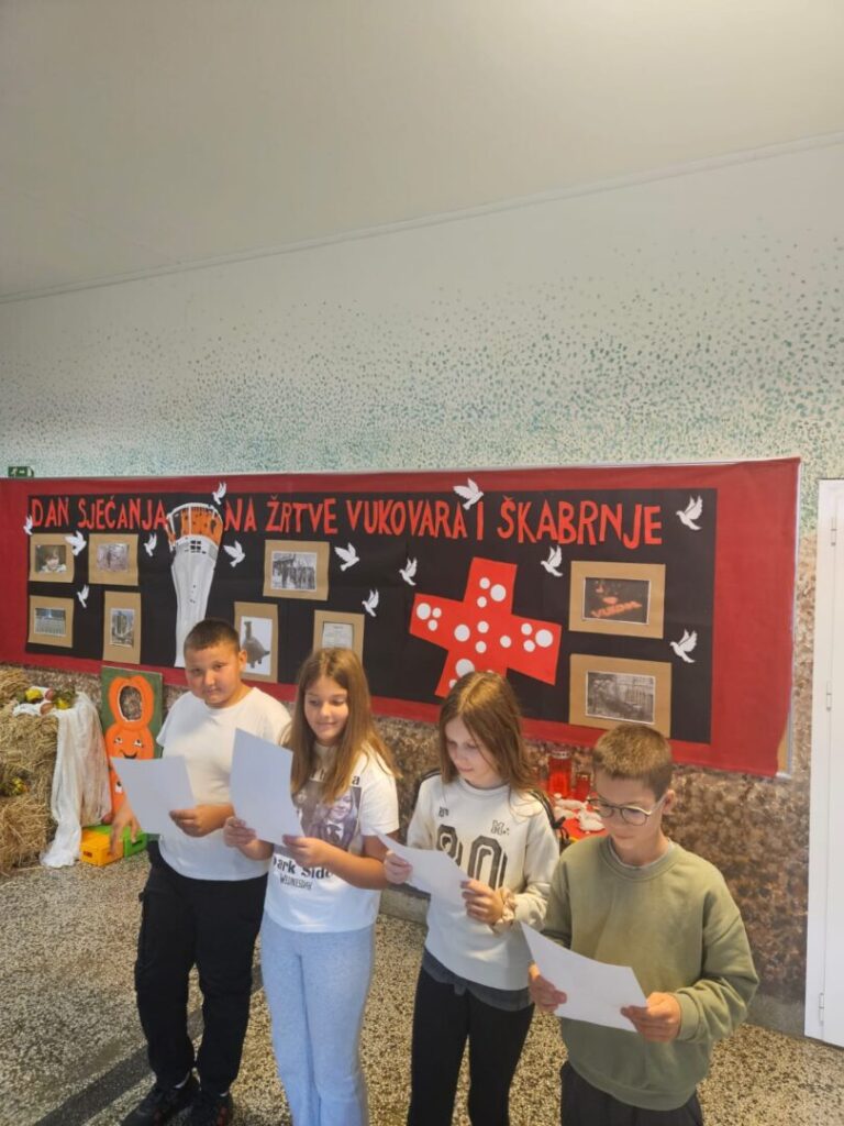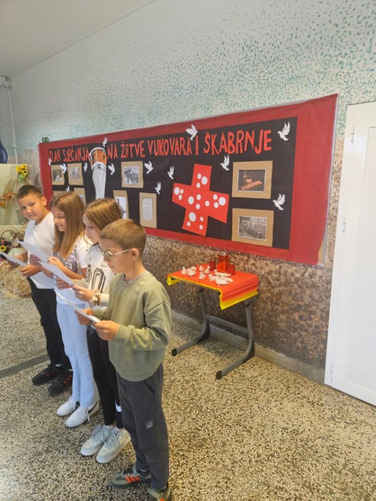 U znak poštovanja i zahvalnosti prema stradalima, učenici su palili svijeće i lampione na spomenicima i ispred škole. Stariji i mlađi učenici zajednički su sudjelovali i u drugim aktivnostima – crtali su vukovarski vodotoranj, čitali pjesme posvećene gradu heroju i razgovarali o važnosti očuvanja sjećanja na ove tragične, ali povijesno važne događaje.
