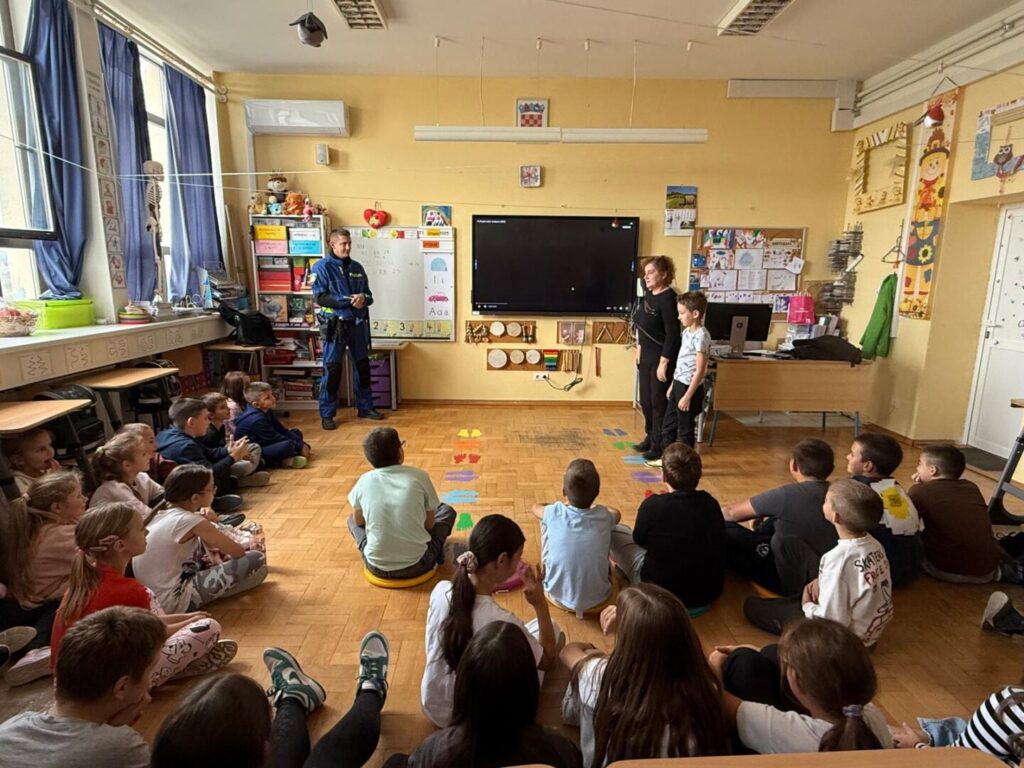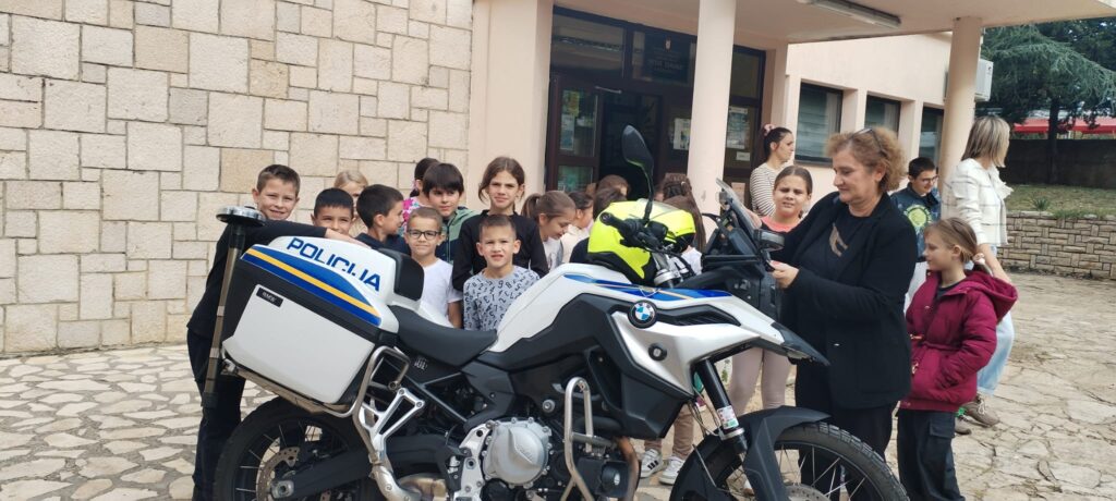 - Od 10 do 11 sati učenici nižih razreda sudjelovali su u aktivnosti “Poštujte naše znakove i romobili – u modi su nova pravila”. Učenici su učili o prometnoj sigurnosti, a poseban doživljaj bio je dolazak policijskog motora, što je učenike posebno oduševilo.