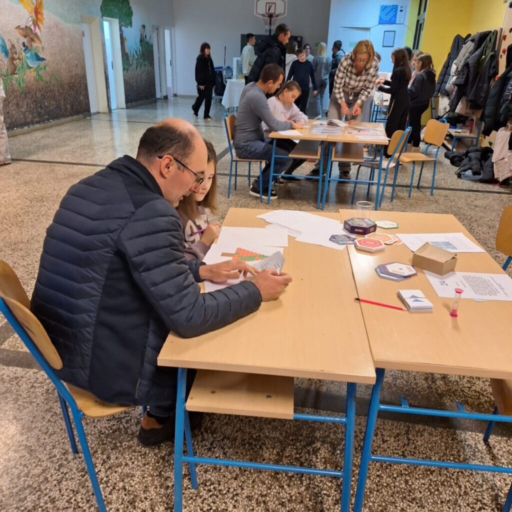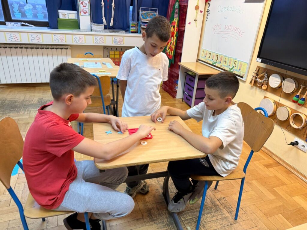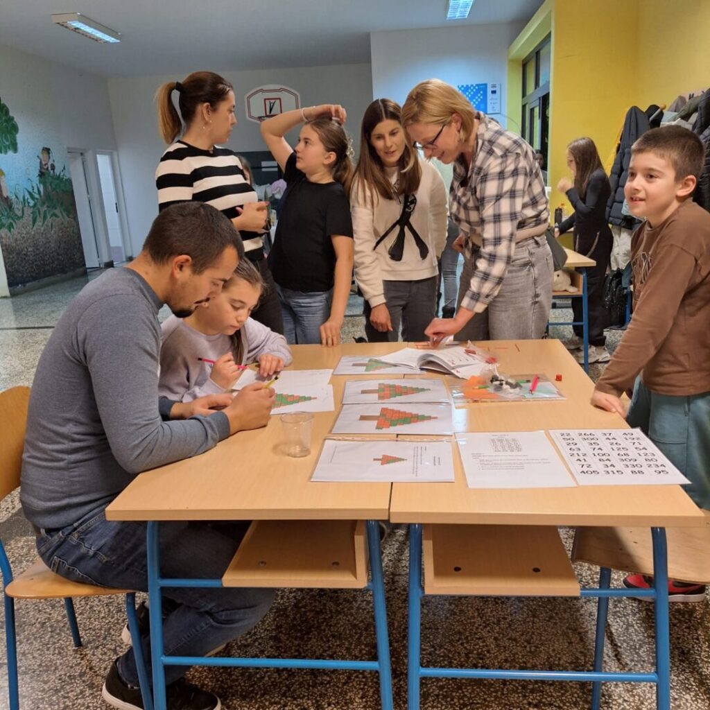 U četvrtak 4. prosinca 2025. godine u našoj školi održana je Večer matematike u organizaciji Hrvatskog matematičkog društva. Ovaj je događaj okupio učenike, njihove roditelje i učitelje naše škole te su u dobroj atmosferi uživali u matematičkim igrama i mozgalicama. Uz pokoji slatki zalogaj i u adventskoj atmosferi otkrivali smo u kreativnu stranu matematike, izrađivali smo ukrase, koristili smo micro:bite, računali, a malo se i razgibali uz kuglanje. Održan je i kviz u kojem su sudjelovali mješoviti timovi učenika i roditelja, koji su pokazali svoje vještine u zajedničkom rješavanju problemskih zadataka. Čestitamo pobjednicima! Hvala svima na sudjelovanju i vidimo se iduće godine.